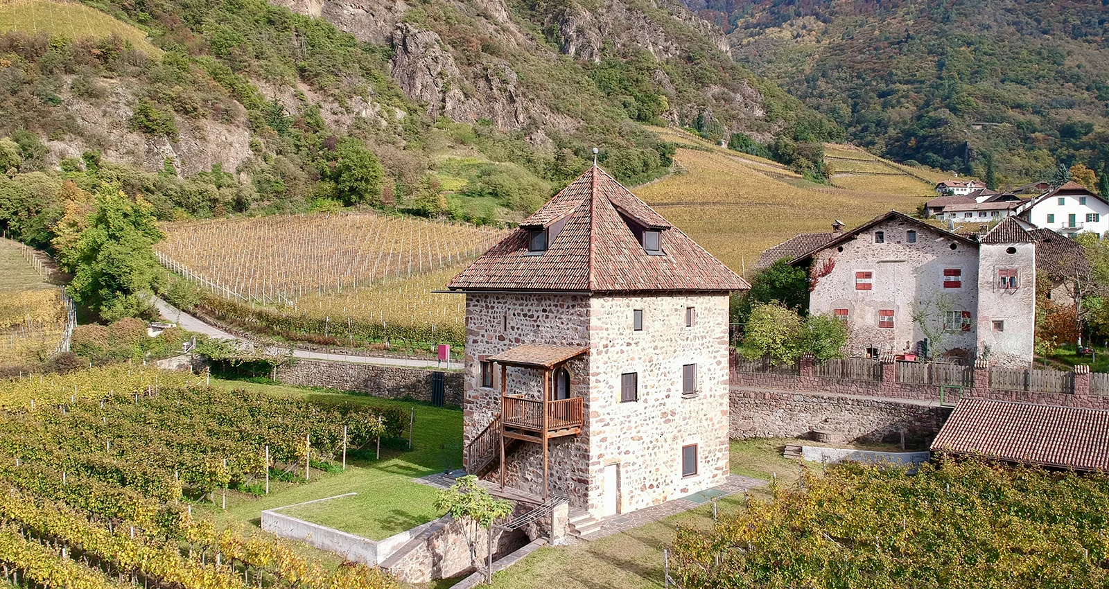 Meraviglioso Maso chiuso con torre storica 'zu Kreuth' e vigneti in vendita sui pendii soleggiati di Terlano.