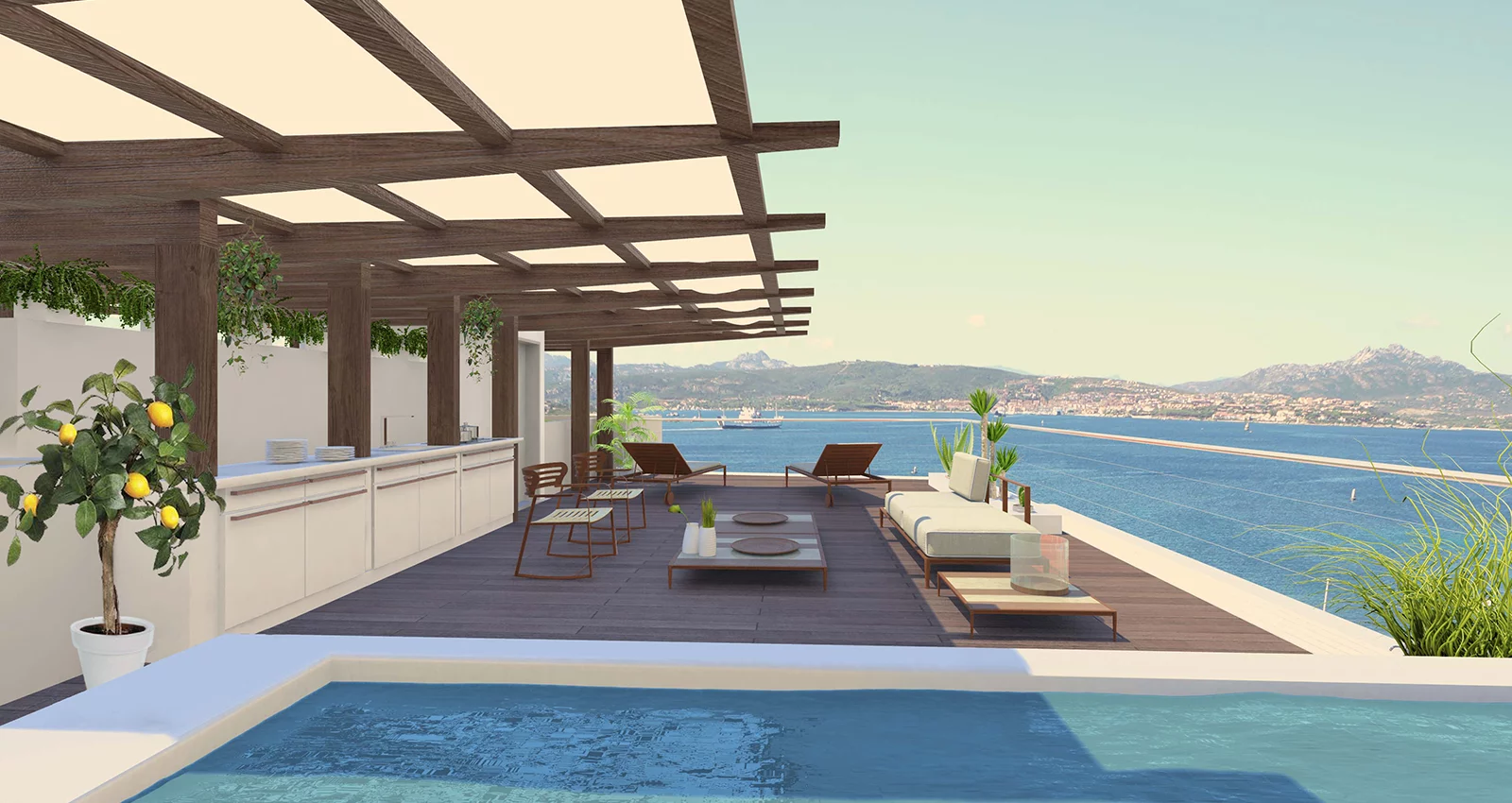 Un progetto straordinario di 5 case chiamate Villa Spargi, Villa Razzoli, Villa Maddalena, Villa Giardinelli e Villa Caprera per un totale di 22 appartamenti costruiti in posizione panoramica fronte mare con una vista verso la costa Smeralda, Santo Stefano e Palau unica e da togliere il fiato.