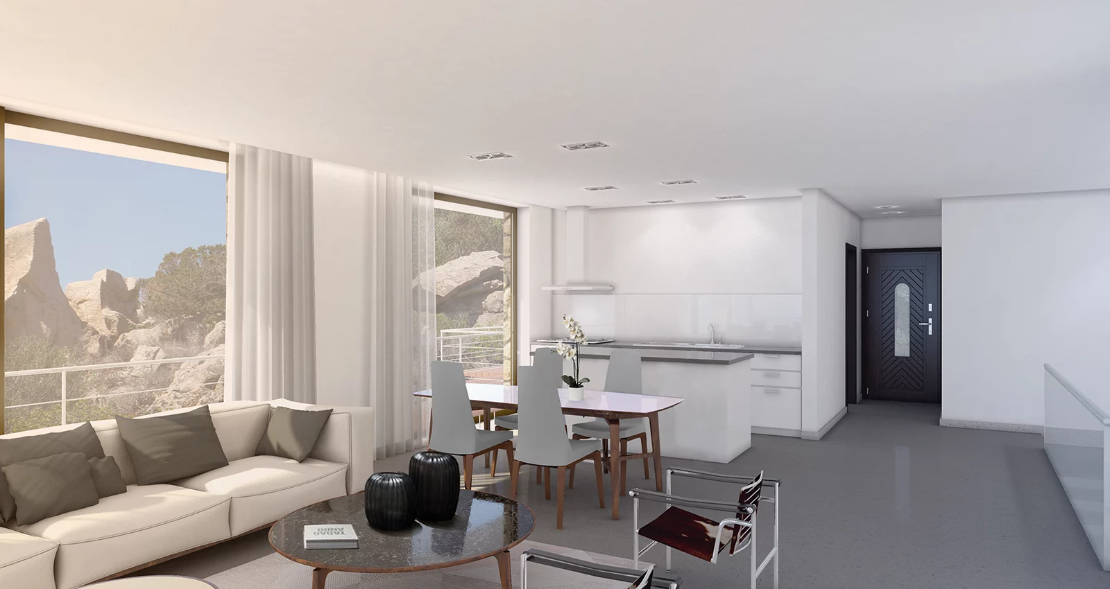 Edifici semplici e selvaggi, ma sofisticati e rispettosi della natura dei luoghi. Riverberano i colori inimitabili dell’isola della Maddalena, uno degli ultimi paradisi terrestri dell’intero Mediterraneo. Respirano gli odori di una natura intatta e protetta a vita dal Parco Naturale della Maddalena. Guardano uno dei mari più belli che mente ricordi, nelle sfumature e negli umori dall’alba al tramonto, dall’alto delle loro terrazze panoramiche. Pietra locale lavorata a mano per i muri a vista, intonaco di calce rosata, ferro ossidato sono le parole, semplici armoniose e anche ardite nella loro volumetrie essenziali le frasi con cui queste case parlano ai loro fortunati abitanti.