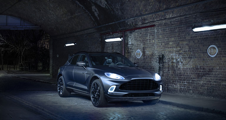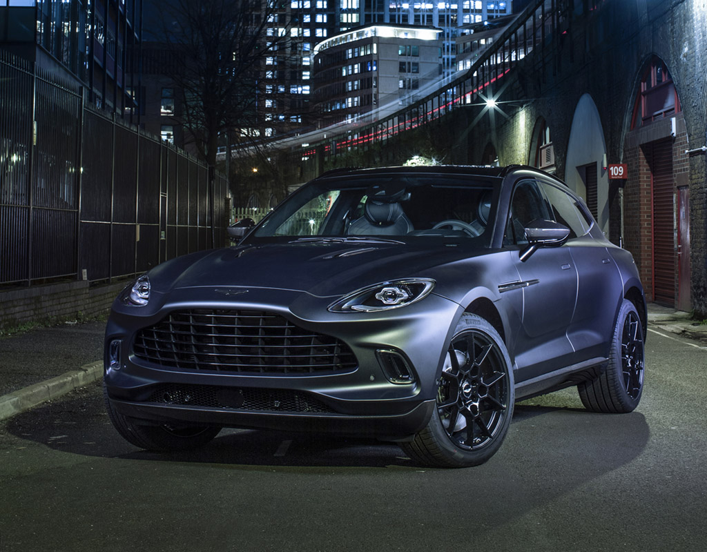 Con »Q by Aston Martin - Commission«, i clienti possono creare opzioni individuali in base alle loro specifiche personali. Le ruote da 22 pollici in nero lucido completano l'audace esterno della vettura. All'interno si trova un design d'interni su misura composto da alluminio cromato satinato con un motivo a rombi e pelle nera. I dettagli in fibra di carbonio, realizzati in materiale solido per dare una finitura tecnica, ricoprono la console centrale e gli inserti delle porte, mentre l'ampia fibra di carbonio »a spina di pesce» viene utilizzata in tutto il pavimento del vano portaoggetti. La caratteristica che forse colpisce di più all'interno del DBX è una superficie unica in fibra di carbonio utilizzata per la console centrale galleggiante dell'auto e i pannelli delle portiere.