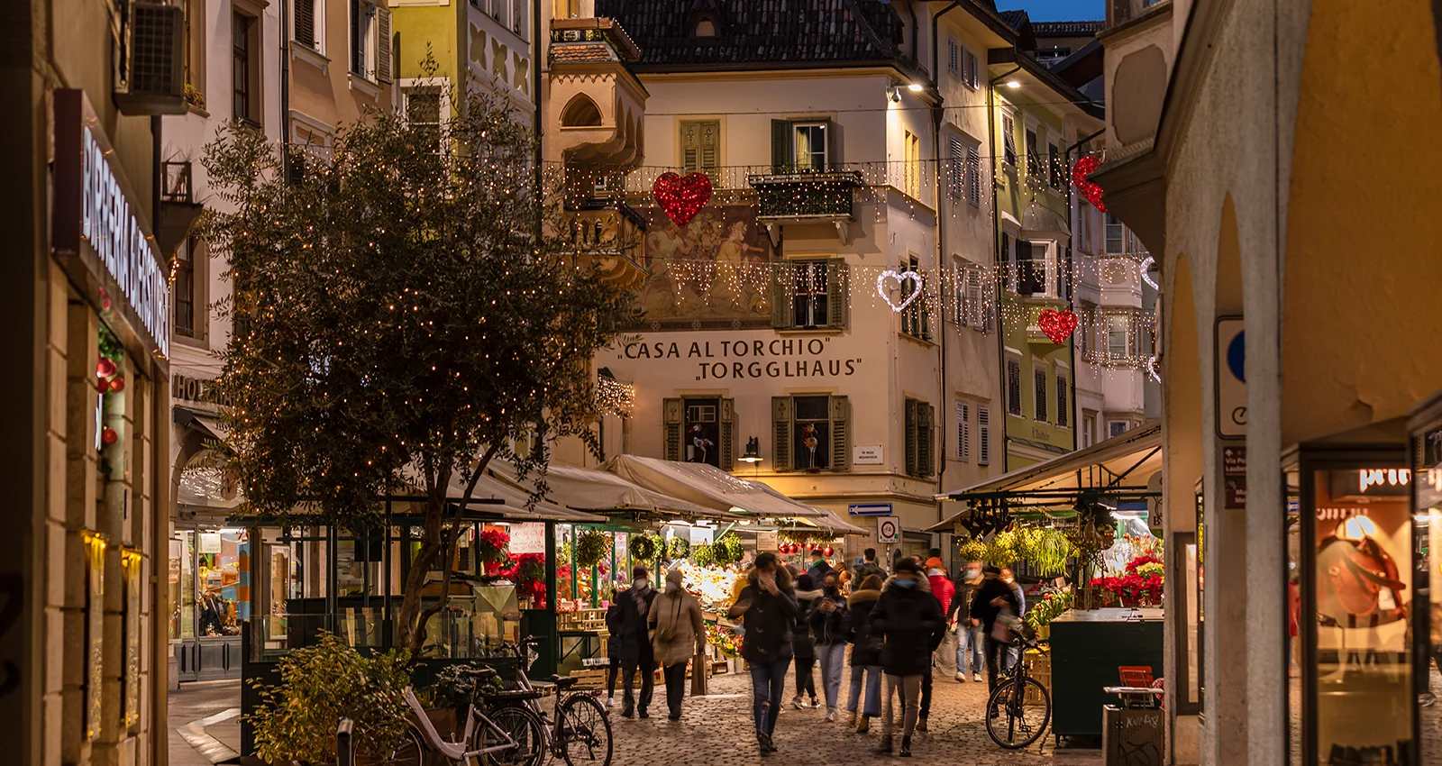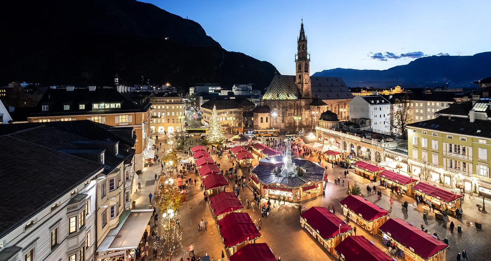Nel periodo natalizio, la città viene vestita a festa e ovunque si sentono e vedono musica natalizia, luci, il dolce profumo di cannella e di vin brulè: parliamo del famoso Mercatino di Natale di Bolzano che si svolge ogni anno in Piazza Walther e dintori.