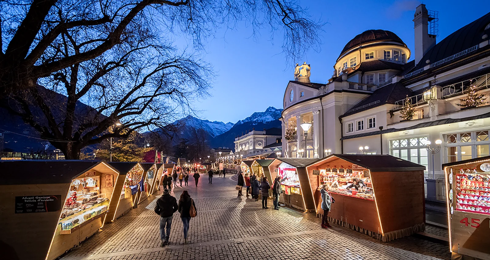 Anche la città di cura di Merano ospita uno dei 5 Mercatini Originali Alto Adige Südtirol: oltre 80 espositori, tra la prima domenica d'Avvento e inizio gennaio, offrono una grande varietà di idee regalo, creando una stupenda atmosfera natalizia al Mercatino di Natale di Merano.
