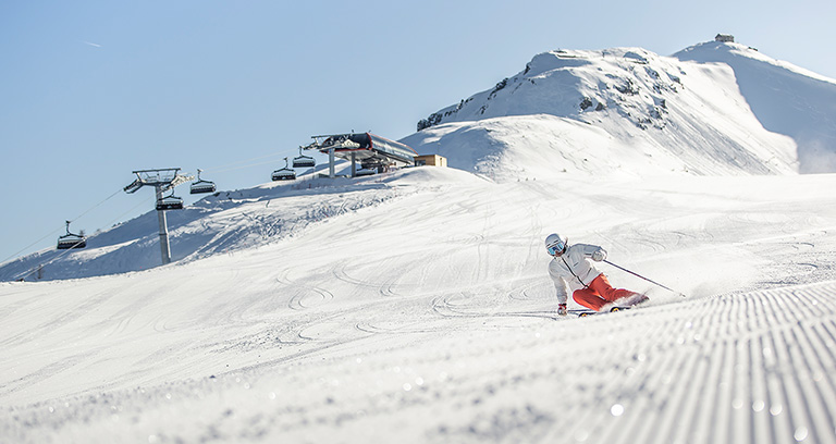 Ganz besonders Mutige wagen sich auf die berühmt-berüchtigte »Holzriese« – mit 71 Prozent Gefälle ist sie die steilste Piste Italiens und jagt selbst erfahrenen Skifahrern einen kleinen Schauer über den Rücken.