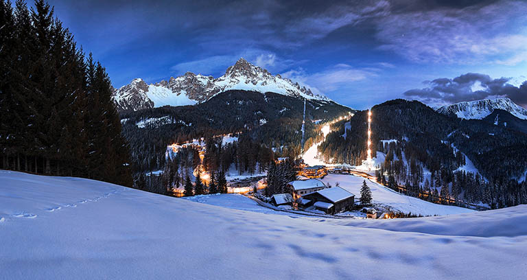 Die Nacht zum Tag zu machen, das zählt für Wintersportbegeisterte in Obereggen übrigens zum Standardprogramm: Dreimal wöchentlich – jeden Dienstag, Donnerstag und Freitag – werden der Nightpark, die Rodelbahn und eine der schönsten Pisten des Skigebiets, die Obereggen-Piste, von 19 bis 22 Uhr beleuchtet.